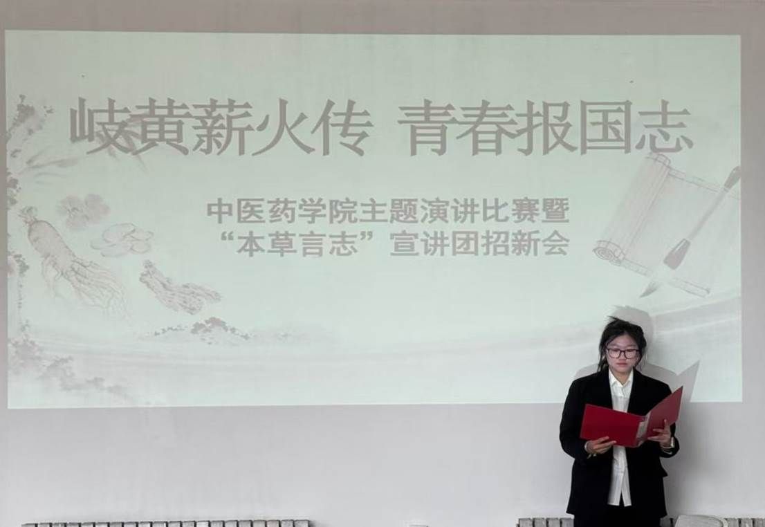 为传承中医药文化瑰宝,激发青年学子的历史使命感与时代担当,2025年10月9日上午,中医药学院举办“岐黄薪火传,青春报国志”主题演讲比赛暨“本草言志”宣讲团招新会。活动现场气氛热烈,思想的火花与青春的热情交织,充分展现了我院学子昂扬的精神风貌。